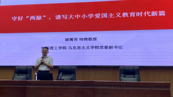kaiyun官网党委副书记谢霄男在主题研修活动中作题为《守好“两脉”,谱写大中小学爱国主义教育时代新篇》的专题报告。谢霄男首先介绍了大中小学思政课一体化的由来,然后从守好中国人的“根脉”的重要性、守好中国人的“魂脉”的必要性、守好“两脉”要厚植爱党爱国情怀、守好“两脉”要坚持爱国、爱党、爱社会主义相统一等四个维度对大中小学爱国主义教育一体化的重要性与方法路径展开了深入讲解。