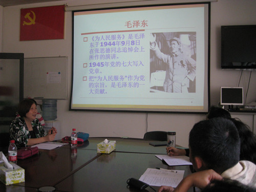 孙艳萍老师上《立足本职,践行党的宗旨》微党课。她从党的为人民服务宗旨的提出讲起,阐述了毛泽东、邓小平、江泽民、胡锦涛等领导人的有关论述,重点说明了习近平总书记有关党的宗旨的论述及实践。他从党和人民军队发展历史说明了牢记党的为人民服务宗旨是关系党和民族命运的根本所在她认为作为思政课老师践行党的宗旨,就是要立足教学岗位,履行好政治思想教育的职责,促进学生的身心成长,对人民负责。
