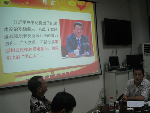 听完党课后,各位党员教师进行了热烈的讨论。吕有云认为要把学和做结合,基础在学,关键在做。做要体现在行动上,体现在我们对思政部发展、学校发展的关心和工作中,要认真反思我们自己在工作中存在的问题。要立场坚定坚持党的基本路线。作为思政课老师对自己要有更高的要求,要用高线要求自己,自己认识清楚了做好了,才对广大师生有示范作用。李洪君认为不管是大到国家、小到学校和个人,都要从自己做起,要健全制度,防止权力绝对化导致腐败。郑锦霞表示没有规矩,不成方圆。我们党的战斗力就在于有规矩有纪律,一切行动听党指挥。她说我们党员教师体现行动上,就是要忠于党和人民教育事业,热爱学生,把学生当成我们的亲人,关心他们的成长,要严格要求自己,严谨治学,她还分享了自己在教学中的一些经验。本次集体学习对于进一步坚定党员的理想信念,提高党性觉悟,尊崇、维护党纪起到了促进作用。曾庆伟老师表示大道理首先要落实到个人身上,从自己做起。他还分享了自己教学经验。张萍、漆志平等老师相继发言,谈谈自己对于讲纪律、守规矩,做合格党员等方面的认识。