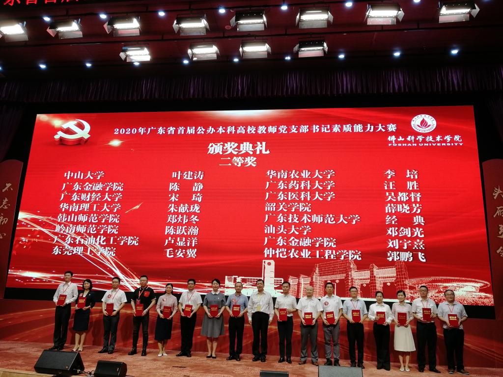 9月26日,由中共广东省委教育工委主办的广东省首届公办高校(本科)教师党支部书记素质能力大赛在佛山科学技术学院仙溪校区圆满落幕。我校kaiyun登录中国入口登录教师党支部书记毛安翼与全省39所公办高校(本科)参赛选手相互比拼,经过4个月的激烈角逐,喜获二等奖。