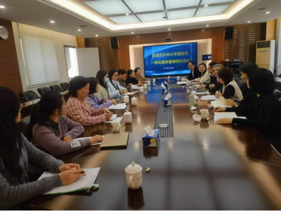 备课会上,潘房雄介绍了本次“全市师生同上一节‘红色思政课’”活动的背景及意义,各学段备课团队分别汇报了各自的备课的思路。谢霄男就红色思政课的教学内容、教学方法、教学资源等方面与大家展开深入交流。陈礼兴充分肯定了大中小思政课一体化的做法和效果,并就教育教学提供了很好的建议。