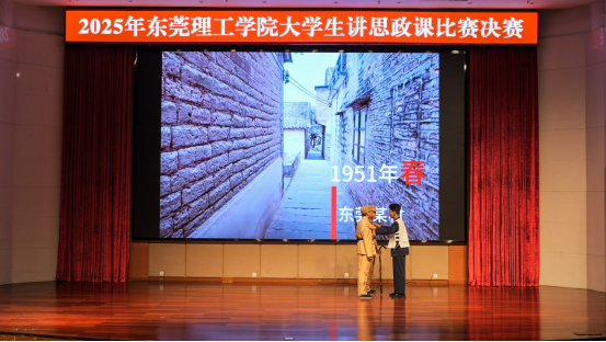 决赛现场,10支学生团队围绕党的理论、改革开放、乡村振兴、红色文化等主题,将专业知识与实践感悟相结合,用青春视角讲述思政故事。《穿越风暴:东莞经济失速与突围之路》以东莞应对贸易战的创新实践为例,展现了中国经济韧性与新发展格局的构建;《虎门硝烟:划破近代阴霾的觉醒之光》通过历史与现实的对话,号召青年传承斗争精神;《红色热土迸发力量,东纵精神薪火相传》则通过大学生党员的实践感悟,诠释了红色基因的时代价值。《解码“山泉密码”,书写青春答卷——从伯公山泉看乡村振兴的广东实践》以乡村振兴典型案例,呼吁青年投身“百千万工程”;《从驻港精神到新时代青年担当》通过退伍大学生梁敖的成长故事,彰显了当代青年的家国情怀;情景剧《烽火家书》则以抗美援朝兄弟的感人故事,传递了志愿军战士的坚定信念。