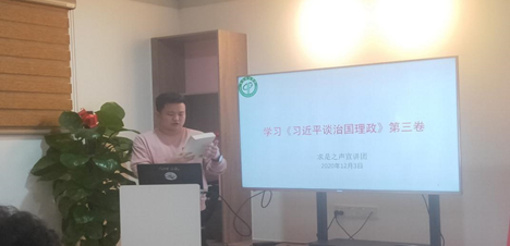 为进一步深入学习贯彻习近平新时代中国特色社会主义思想,提升莞工学子的理论修养和政治素养,12月3日下午,kaiyun登录中国入口登录求是之声宣讲团陈晓展同学在莞馨社区活动室向入党积极分子、预备党员宣讲《习近平谈治国理政》第三卷。