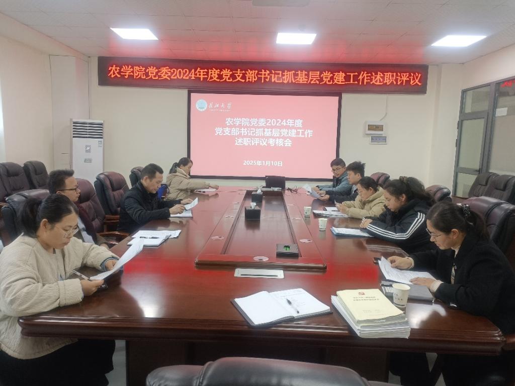 (通讯员 付雪娇 刘晓雪)为深入贯彻落实新时代党的建设总要求,加强党的基层组织建设,落实全面从严治党政治责任,推进党建与业务深度融合,2025年1月10日下午,世界杯官网党委在农科大楼3064会议室召开2024年度党支部书记抓党建工作述职评议会。学院党委委员和各党支部书记等参加,会议由学院党委书记周锦华主持。