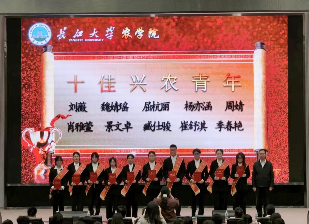 在全场热烈而持久的掌声中,院长助理邓锋林宣读了《关于表彰第十五届“十佳兴农青年”的决定》。这份荣誉是对在农学领域表现卓越的学子的高度认可与鼓励,更是为全体新生树立的 “兴农标杆”。随后,党委书记周锦华亲自为刘薇等十佳兴农青年颁奖,现场气氛达到了高潮。周书记鼓励全体学生以他们为榜样,在学农的道路上奋勇前行,追求卓越,让 “兴农” 的种子在心中扎根生长。