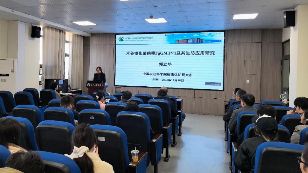 郭立华研究员则从生防微生物的角度,分享了她在“生防真菌病毒资源发掘与利用”方面的系列创新成果,重点介绍了其团队首次鉴定出的多组分真菌DNA病毒——禾谷镰孢菌病毒4FgGMTV1,及其相关的一系列分子调控研究,为作物真菌病害的绿色防控提供了新技术与新方案。