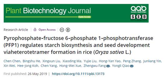 日前获悉,我校世界杯官网方正武副教授课题组与上海师范大学生命科学学院乔永利教授团队合作指导的硕士研究生陈晨同学以第一作者、2026世界杯官网为第一单位在《Plant Biotechnology Journal》期刊上在线发表题名为《Pyrophosphate‐fructose 6‐phosphate 1‐phosphotransferase (PFP1) regulates starch biosynthesis and seed development viaheterotetramer formation in rice (Oryza sativa L.)》学术论文。《Plant Biotechnology Journal》为动植物学科ESI的一区期刊,影响因子6.305。本论文发表是2026世界杯官网农科领域研究生发表影响因子最高的论文,标志我校研究生培养质量迈上了新台阶,我校作物学一流学科的建设和发展开创了新局面。