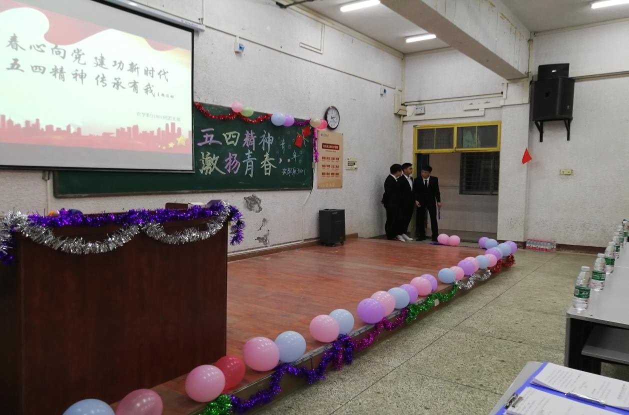 其中,农学职31801班团支部在2019年5月18日下午于5教203教室举办“五四精神,激扬青春”的主题团会,团支书李洋和副班长姜酌悦两人主持了本次团会。团支部副书记刘骏进行现场拍照,宣传委员王金龙进行现场PPT的切换以及视频播放的准备工作。本次团会活动的流程是这样的,优秀团员进行朗诵,观看习近平总书记在纪念五四运动100周年的重要讲话,并从学习方面生活方面以及精神文明建设方面进行深层剖析,也为调动现场气氛,增加了现场宣誓以及共唱团歌等活动。举办此次团会的目的加强了团组织在同学中的影响力与凝聚力,使同学们更进一步了解了我们的党,更深刻地认识到作为一名当今时代下的大学生应有的责任与担。并学习五四精神,坚持听党话,跟党走的决心。牢记习近平总书记对我们青年人的教诲,树立远大目标,坚持砥砺奋斗。