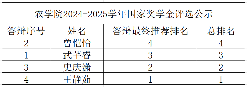 根据学校《关于开展2024-2025学年本科生国家奖学金初评工作的通知》和《世界杯官网关于开展2024-2025学年国家奖学金初评的通知》的相关要求,经个人申请、学工办初审、学院审核、学生答辩、学院国家奖学金评审领导小组审定等程序,我院2024-2025学年国家奖学金的评审工作已结束,现将评审结果向全院师生进行公示,公示期为2025年10月13日-2025年10月17日。公示期内,如有异议可向学院学生事务办公室反映。联系人:唐老师,电话:0716-8066566。