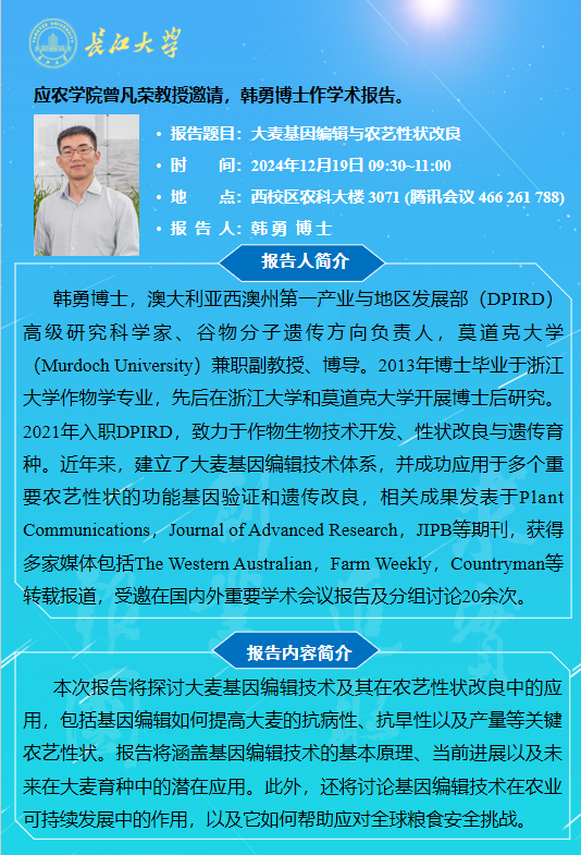 世界杯官网2024年学术报告(二十七):大麦基因编辑与农艺性状改良