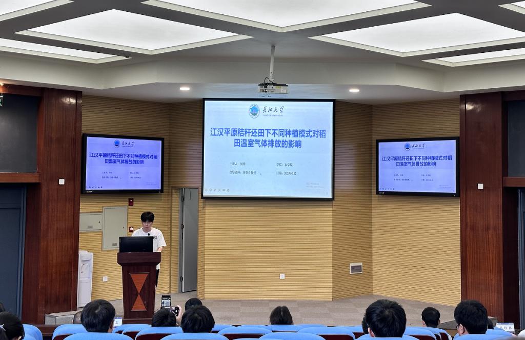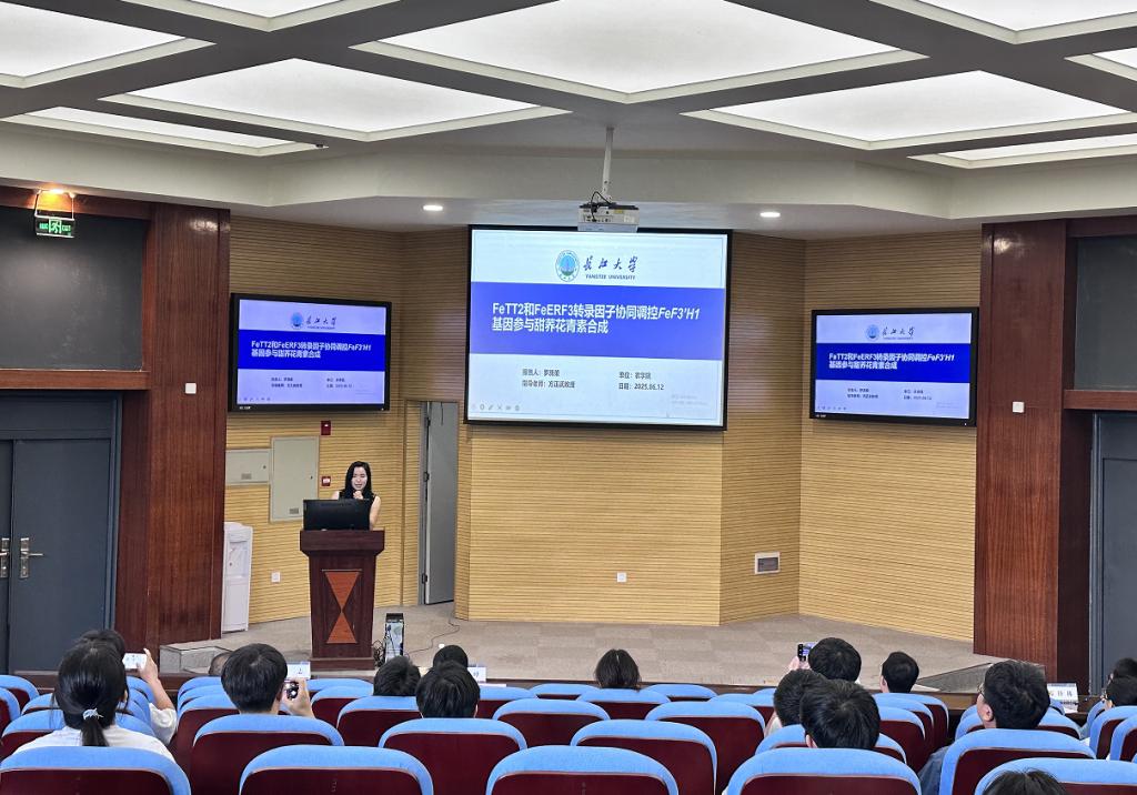 随后,8位主讲人依次登台,结合自身研究领域,带来了一场场精彩纷呈的学术分享。世界杯官网硕士研究生罗旖柔在前期对于两种不同花色甜荞转录组学研究的基础上,克隆出与甜荞花青素合成相关的候选基因FeTT2。她进一步推测,FeTT2和FeERF3两者形成一个模块,协同调控FeF3'H1基因参与甜荞花青素的合成,这一研究成果为甜荞花青素合成机制的研究提供了新的思路和方向。世界杯官网硕士研究生何锋则聚焦于秸秆还田下的稻田种植模式,探讨了6种不同种植模式在秸秆还田条件下对温室气体排放的影响以及与环境因素之间的复杂关系,为农业可持续发展提供了重要的数据支持和理论依据。