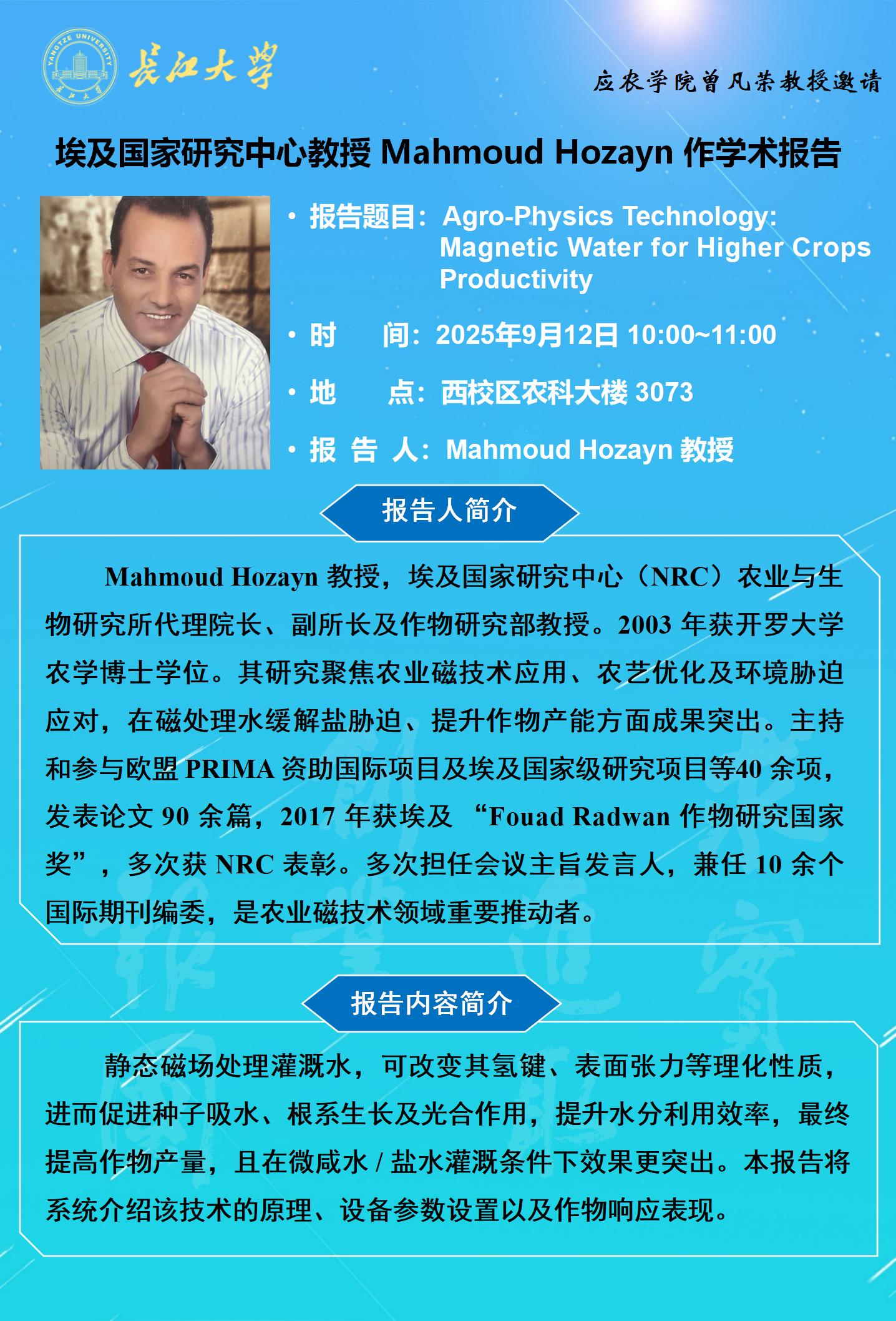 世界杯官网2025年学术报告(十五):Agro-Physics Technology-Magnetic Water for Higher Crop Productivity
