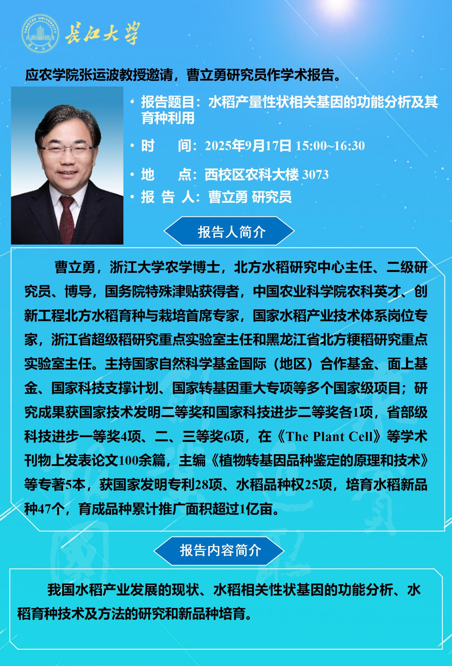 世界杯官网2025年学术报告(十六):水稻产量性状相关基因的功能分析及其育种利用