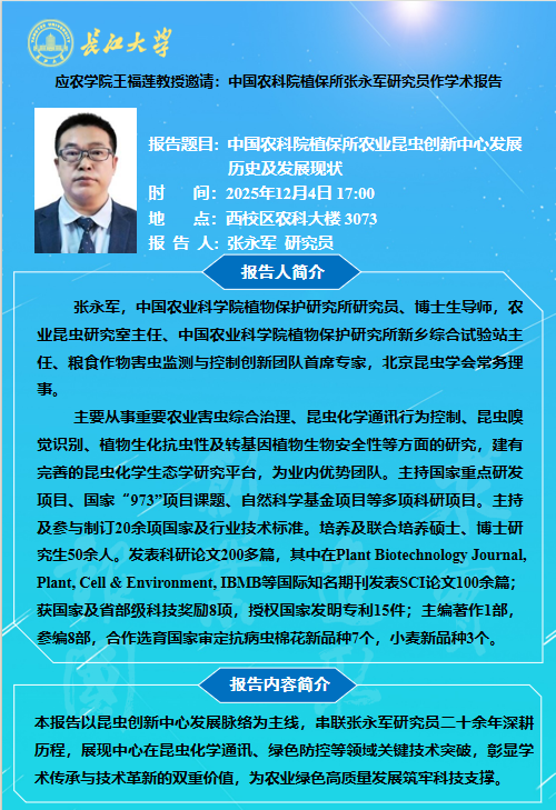 下一篇: 世界杯官网2025年学术报告(二十八):小麦-麦蚜-天敌互作关系对气候变暖的响应及害虫绿色防控