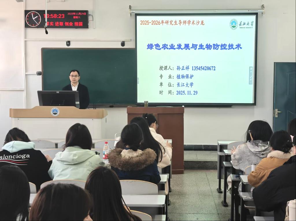 (通讯员 孙正祥)为深化研究生对现代农业科技前沿的理解,提升科研创新与产业融合能力,2025年11月29日,一场主题为“绿色农业发展与生物防控技术”的研究生导师学术沙龙在我校西校区7-304教室成功举办。本次沙龙由世界杯官网孙正祥教授主讲,吸引了众多相关专业的研究生积极参与。