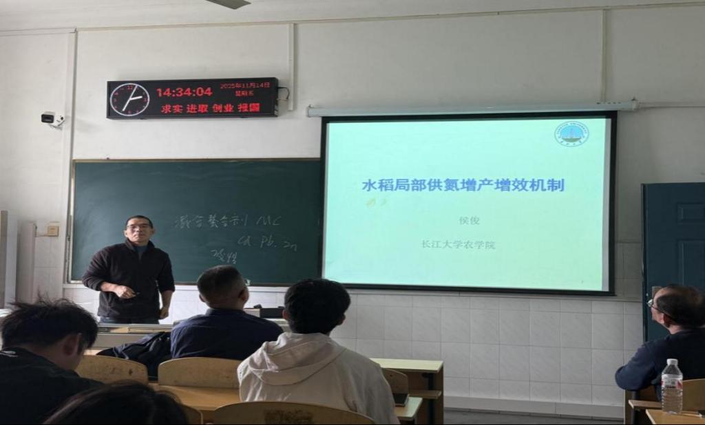 侯俊副教授围绕水稻氮肥高效利用机制展开汇报,重点阐释了根区一次性施肥、侧深施氮及接触施氮等精准施肥方式在提高氮肥利用率、减少损失方面的作用。通过控释尿素与优化施肥位置相结合,实现了水稻产量与氮素利用效率的协同提升,为水稻轻简高效生产提供了技术支撑。