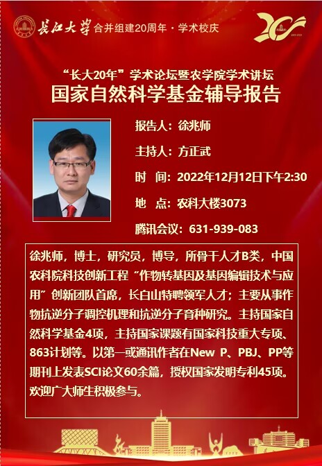 “长大20年”学术论坛暨世界杯官网学术讲坛国家自然科学基金辅导报告