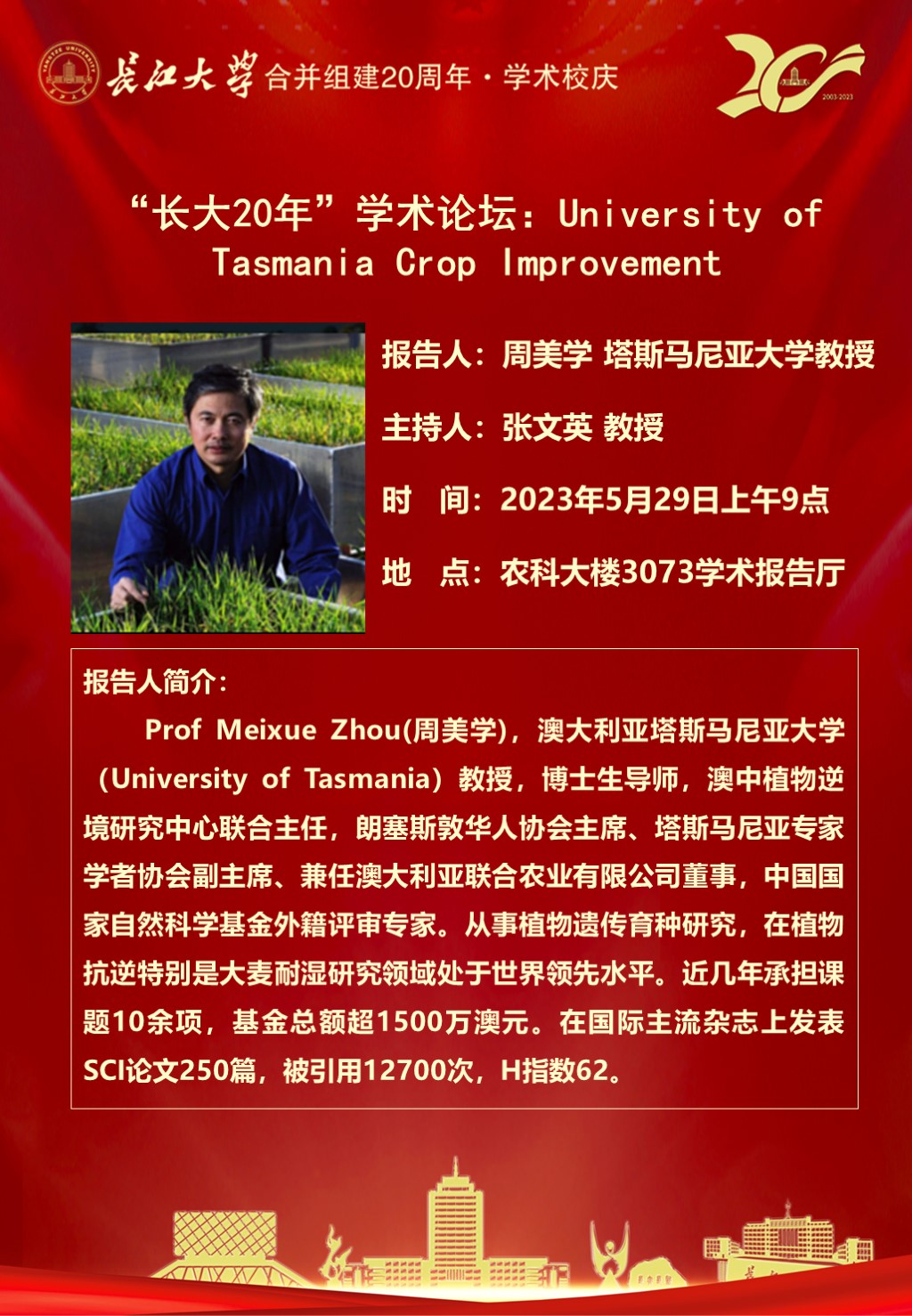 “长大20年”学术论坛暨世界杯官网学术讲坛:University of Tasmania Crop Improvement