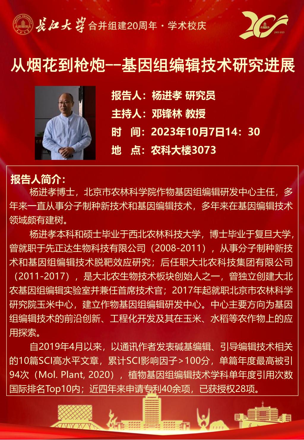 “长大20年”学术论坛暨世界杯官网学术讲坛:从烟花到枪炮——基因组编辑技术研究进展