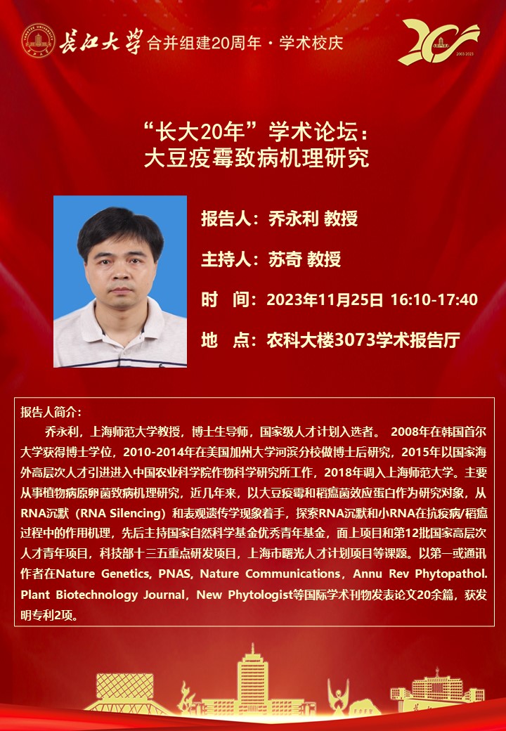 “长大20年”学术论坛暨世界杯官网学术讲坛:大豆疫霉致病机理研究