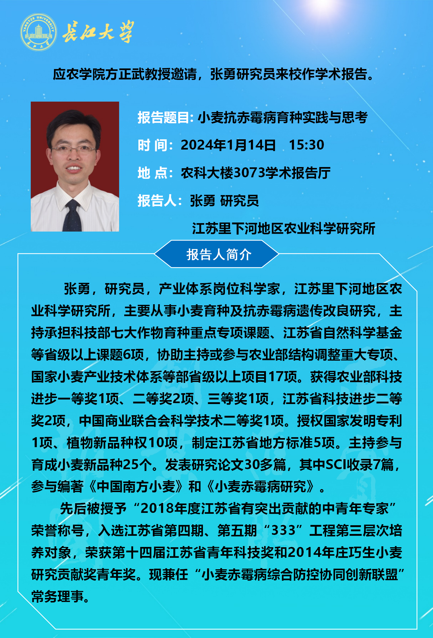 世界杯官网2024年学术报告(五):小麦抗病育种分子元件创新与运用