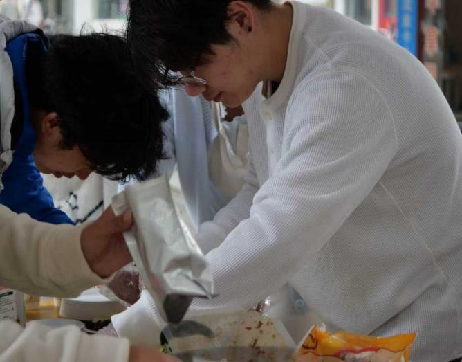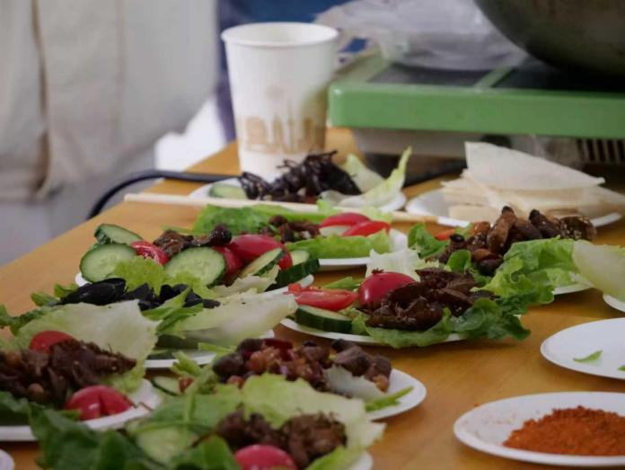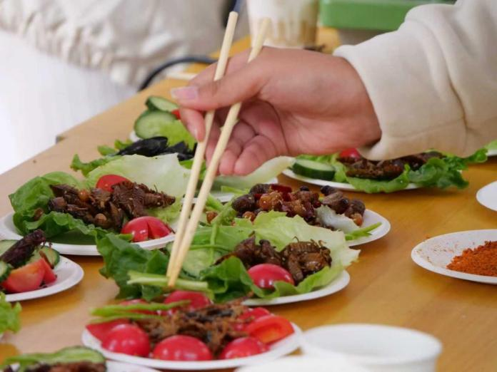 而最具吸引力的昆虫宴环节,更是将活动推向高潮。竹虫、蚕蛹、蚂蚱、面包虫、蜂蛹等多种可食用昆虫,经精心清洗、科学烹制后惊艳亮相。在工作人员的指导下,师生沉浸式参与料理制作,在体验独特口感的同时,打破对昆虫的固有偏见,真切体会到 “昆虫是自然馈赠” 的深刻内涵,实现了从 “认知昆虫” 到 “接纳昆虫” 的跨越。