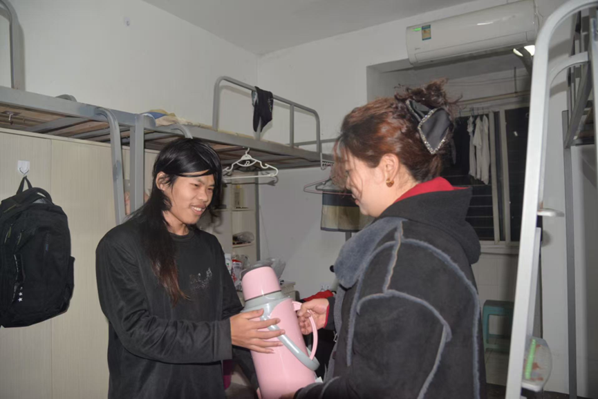 “天气越冷越要注意保暖,这个暖瓶容量足,喝水、暖手都方便,日常也要多留意宿舍用电安全。” 宿管阿姨递过热水瓶时,话语朴实却满含关切,叮嘱的细节里藏着家人般的牵挂。接过这份沉甸甸的关怀,王同学心底暖意融融,连连致谢,坦言远离家乡求学,这份突如其来的温暖让冬日寒意瞬间消散,真切感受到了校园里的归属感。