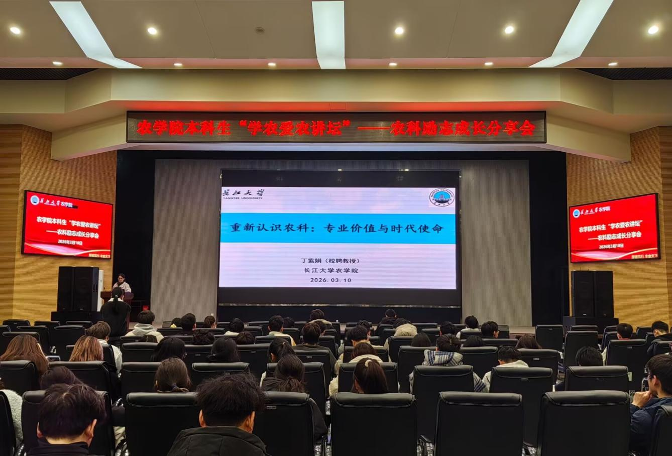 (通讯员 吴静宜 刘佳昊/文 康新陈 王思雨/摄)为厚植学子学农爱农情怀,传承 “厚德笃行、丰食天下” 院训精神,3 月 10 日晚 19:00 ,世界杯官网第二期本科生“学农爱农讲坛” —— 农科励志成长分享会在农科大楼 1058 报告厅如期举行。本期讲坛特邀丁紫娟、侯泽豪两位教授担任主讲嘉宾,分团委书记付雪娇、辅导员唐玉婷与 2024 级、2025 级全体本科生共同参与。
