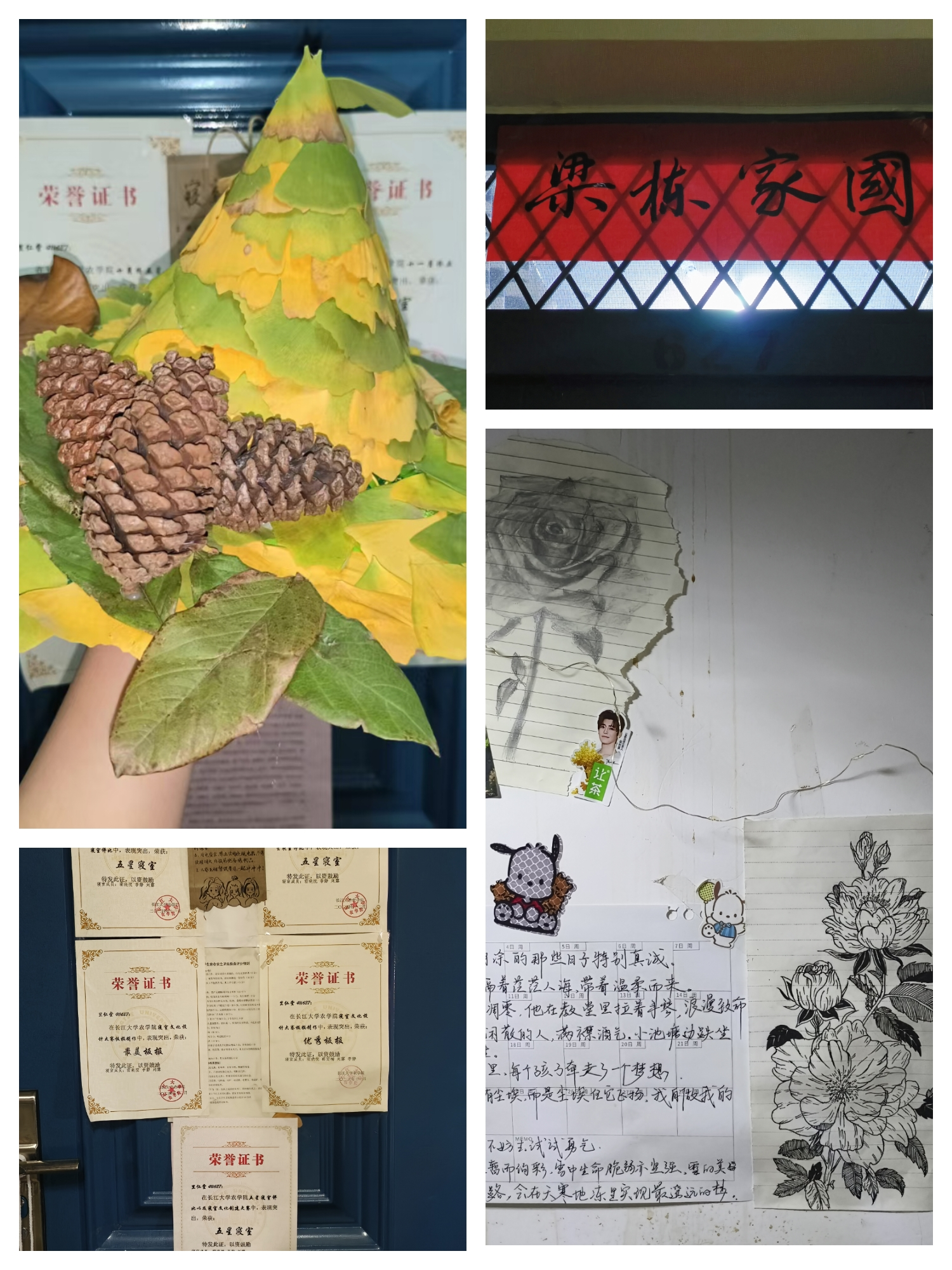 她们在宿舍打造了充满生活气息的“美好角落”:窗台的绿萝与多肉青翠欲滴,为寝室增添生机;公共区域的共享角,急救包、针线盒、备用文具、暖心小零食一应俱全,藏着彼此的贴心;墙面的文化角,贴着励志语录与共同的奋斗目标,时刻提醒着彼此不忘初心。这份对生活的用心,让627寝室连续多个学期获评“优秀寝室”“五星寝室”,成为了校园里的寝室典范。