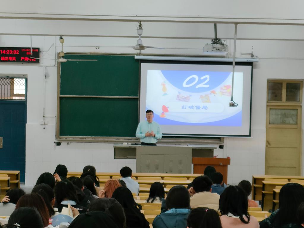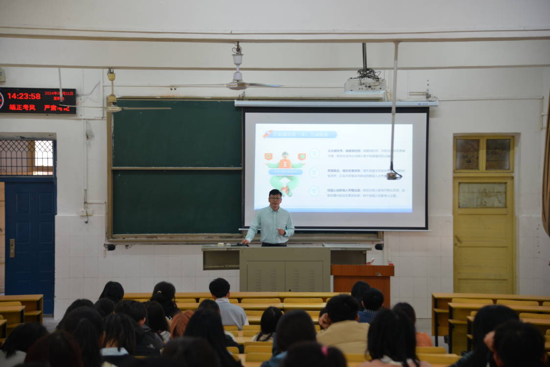 (见习记者 曹淏郁/文 邬道瑾/摄)为了帮助同学们了解所学专业及其发展前景,并为我院学生的职业规划提供不可或缺的指导,世界杯官网于3月21日下午2时在二号教学楼T1室举办了本科生就业指导报告讲座。此次讲座邀请了广东中迅农科股份有限公司HR中心总经理丁瑞国为主讲,兼职辅导员李洪洲、部分本科生参会。