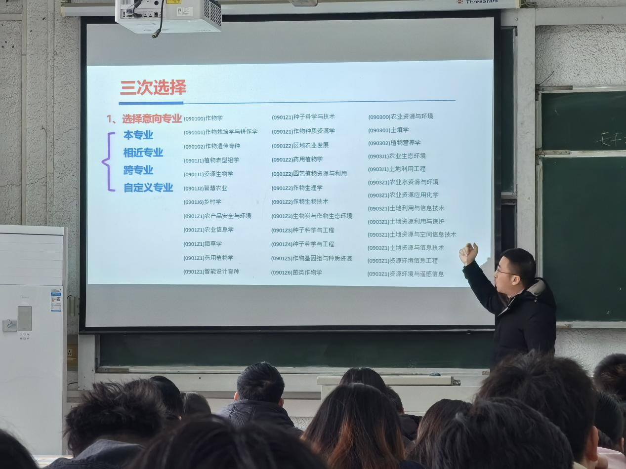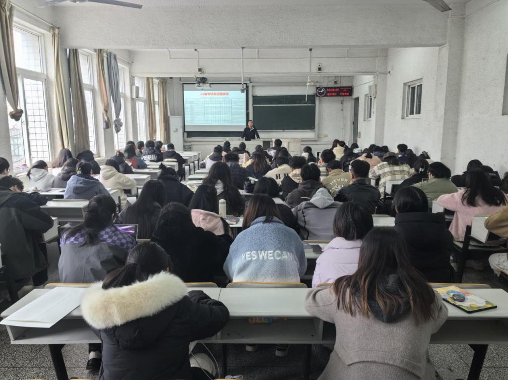 谭老师主要从当前考研形势、报考院校选择、考研复习备考三个方面展开详细论述。对于农学相关专业来说,目前整体就业形势依然严峻,考研是较好的选择。目前考研报录比大约为3:1,学院前几届学生考研录取比将近一半,考取概率较大。谭老师强调,报考院校主要是信息战,不仅可以报考高校,报考科研院所也是很好的选择。他建议同学们根据自身情况选择报考地区,选择专业时可报考相近专业,提高报考成功的概率。谭老师为同学们做了清晰而简洁的复习备考时间规划,方便同学们的高效备考。