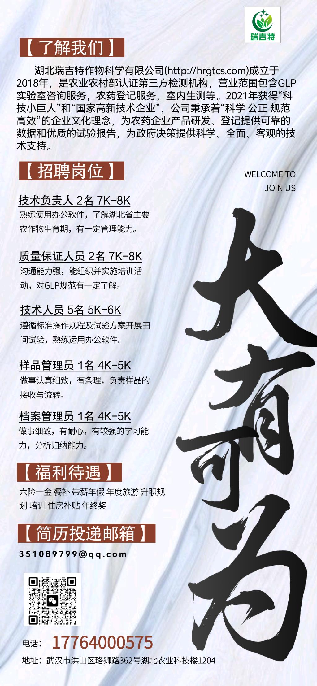【就业宣讲】湖北瑞吉特作物科学有限公司宣讲会