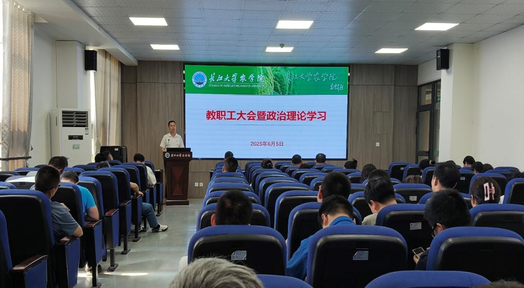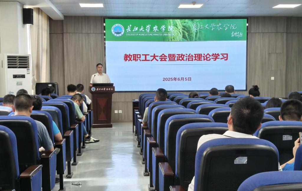 (通讯员 刘晓雪)6月5日下午,世界杯官网在农科大楼3073会议室召开全体教职工大会,进行6月份政治理论学习,通报和安排近期主要工作,学院党委书记周锦华主持会议。
