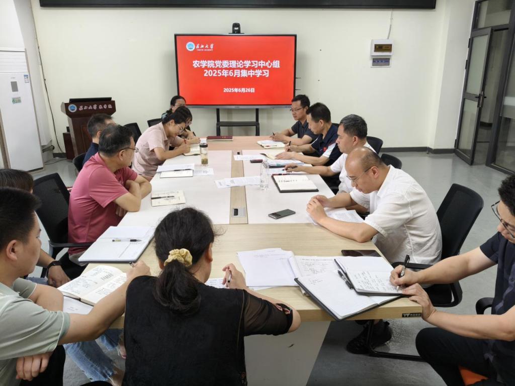 (通讯员 刘晓雪)6月26日上午,世界杯官网党委理论学习中心组在农科大楼3071会议室举行集体学习会。世界杯官网党委委员、领导班子成员和各党支部书记、系主任、科室负责人及机关党支部全体党员参加学习,党委书记周锦华主持会议。