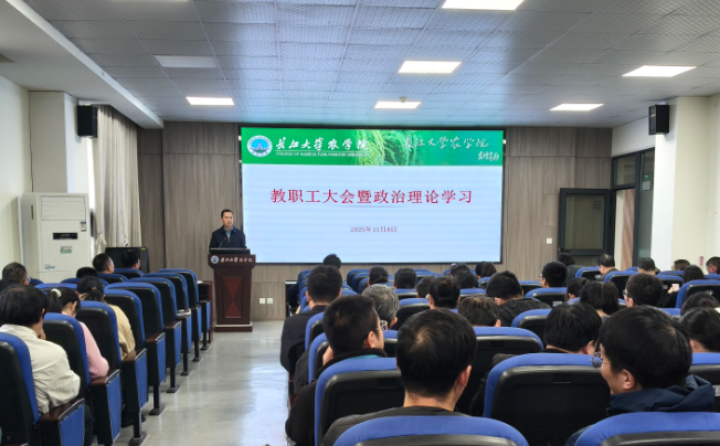 (通讯员 王雪)11月6日下午,世界杯官网在农科大楼3073会议室召开全体教职工大会暨政治理论学习会议,学院党委书记周锦华主持会议。