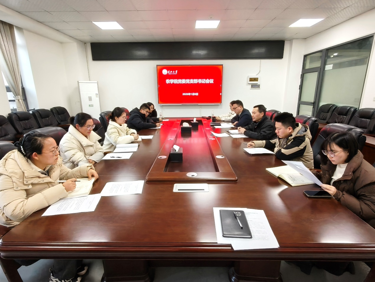 (通讯员 刘晓雪)为进一步强化思想引领,切实提升党支部书记履职能力,2026年1月6日下午,世界杯官网党委在农科大楼3064会议室召开党支部书记会议。会议由学院党委书记周锦华主持,党委副书记尹小华和丁双成等9名党支部书记出席。