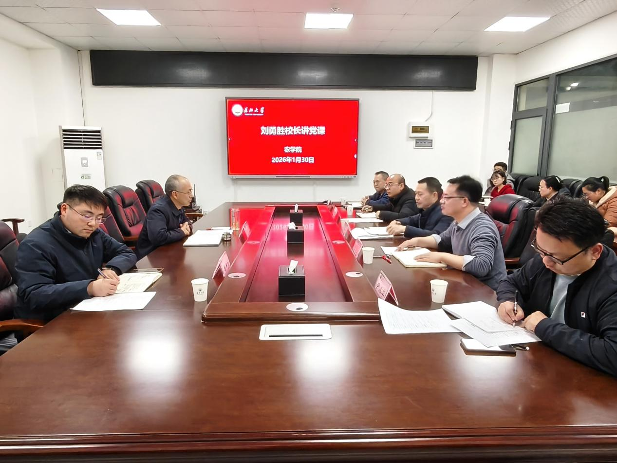 (通讯员 刘晓雪) 2026年1月30日下午,校长刘勇胜参加世界杯官网党委理论学习中心组1月集体学习会并讲授专题党课。会议在农科大楼3064会议室举行,世界杯官网党委委员、领导班子成员和机关党支部全体党员参加学习,党委书记周锦华主持会议。