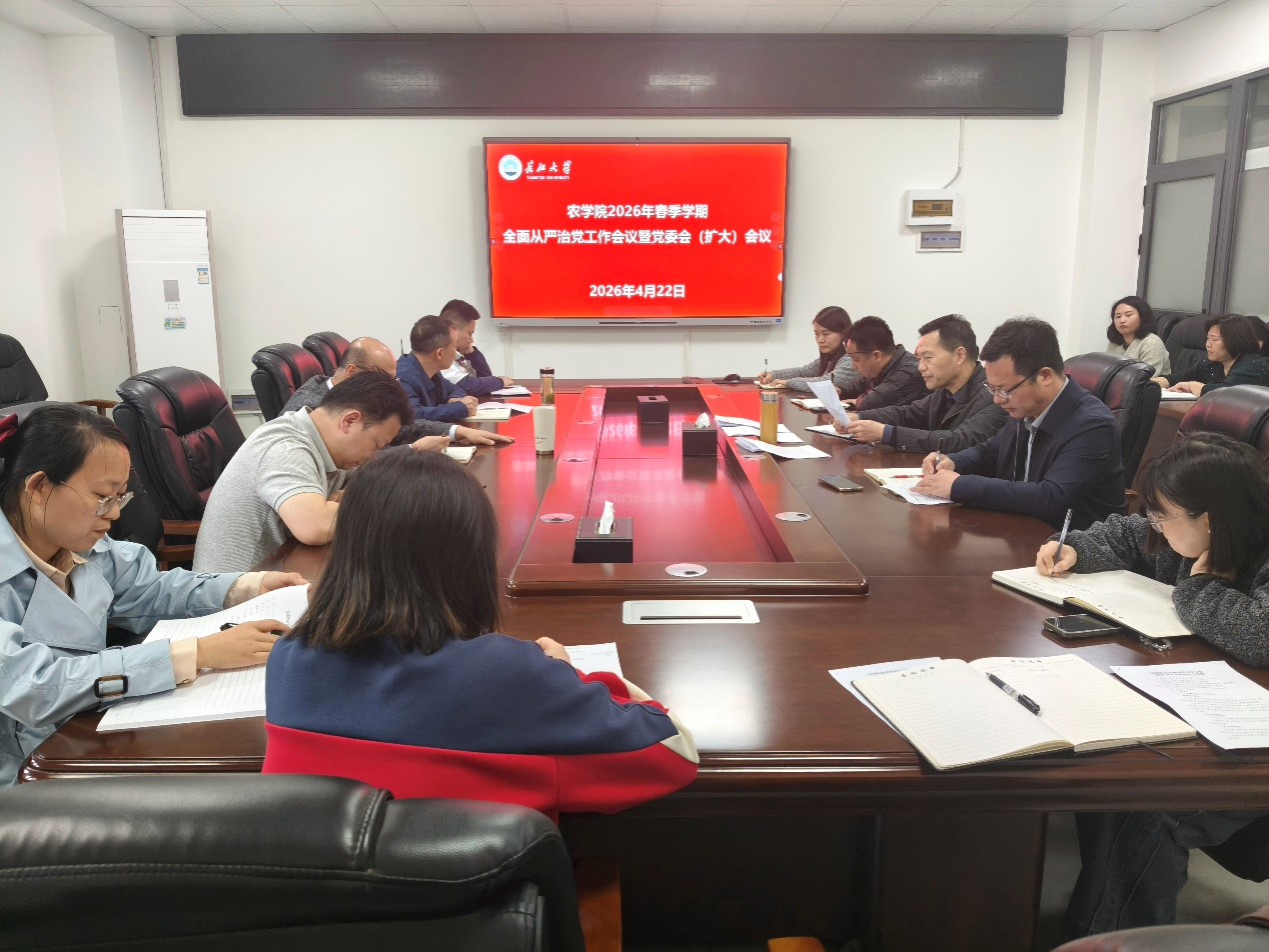 (通讯员 刘晓雪) 为认真落实全面从严治党主体责任,4月22日下午,世界杯官网党委在农科大楼三楼3064会议室召开2026年春季学期全面从严治党工作会议暨党委会(扩大)会议,学院党委委员、领导班子成员、党建秘书、各党支部书记和系主任、科室负责人参加会议,学院党委书记周锦华主持会议。