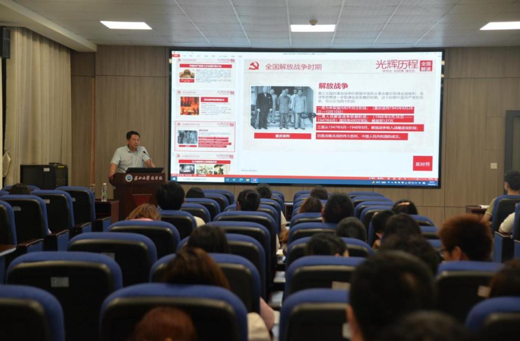 会议伊始,姜书记用自己关于担任我校招聘政治辅导员评委的故事引出对党史故事的介绍。姜书记向学员们介绍了党史的发展脉络,即马克思主义在中国的传播,发展,再到与中国国情的完美结合的过程。姜书记从新民主主义革命时期、社会主义革命和建设时期、改革开放和社会主义现代化建设新时期展开详细论述,其中包括打破封建思想桎梏的新文化运动、革命高涨起点的国共第一次合作、中国共产党开展的19次全国代表大会等重要的历史节点,同时穿插了不少党内英雄人物的故事。在讲到重要内容的时候,姜书记贴心提醒大家作好记录,认真学习。临近末尾,姜书记指出我们当代青年应该一直秉承以人民为中心、为人民谋福利的初心,为实现中华民族伟大复兴的中国梦贡献出青年一代该有的一份力量。