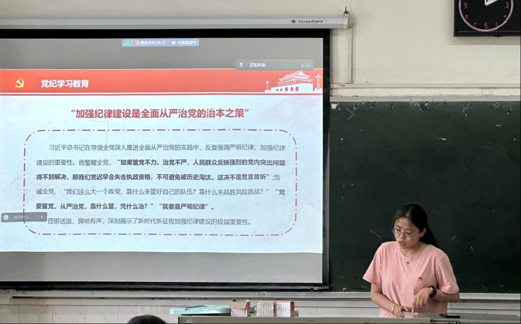 (通讯员 李雅倩)根据学校组织部和学院党委要求,我院本科生党支部于2024年5月24日开展了党纪学习教育集体学习。本次活动旨在加强支部全体党员的纪律意识,提升党性修养,为学校的高质量发展注入强大的精神动力。活动由支部副书记高欣怡主持,全体党员参加。
