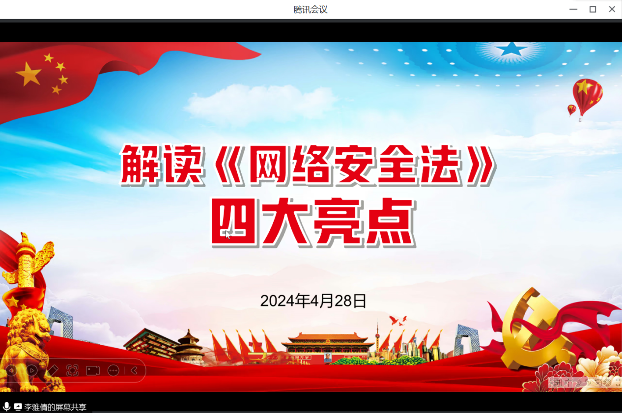 会议伊始,高欣怡同志带领全体党员重温入党誓词。随后,江雪同志对本月党费交纳情况进行了说明。紧接着,李雅倩同志给全体党员讲授微党课,带大家一起解读《网络安全法》的四大亮点:明确网络空间主权原则、明确实施网络实名制度、明确对关键信息基础设施实行重点保护、明确共同治理原则,并强调作为党员队伍的一员,各位党员同志更应该充分发挥模范作用,遵守网络安全法律,增强网络安全意识,维护网络安全空间,携手筑牢国家网络安全屏障。