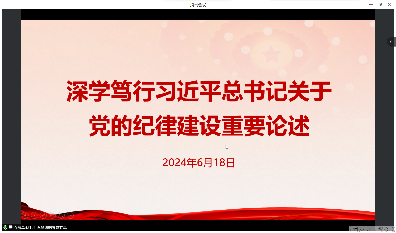 本次党纪学习教育聚焦新修订的《中国共产党纪律处分条例》。支部书记黄承石针对党的六大纪律,并结合学院工作实际,对新《条例》进行了详细的剖析和解读。同时,党支部组织全体党员共同学习交流了习近平总书记关于党的纪律建设的重要论述,探讨了如何在实际工作中贯彻落实党的纪律要求。