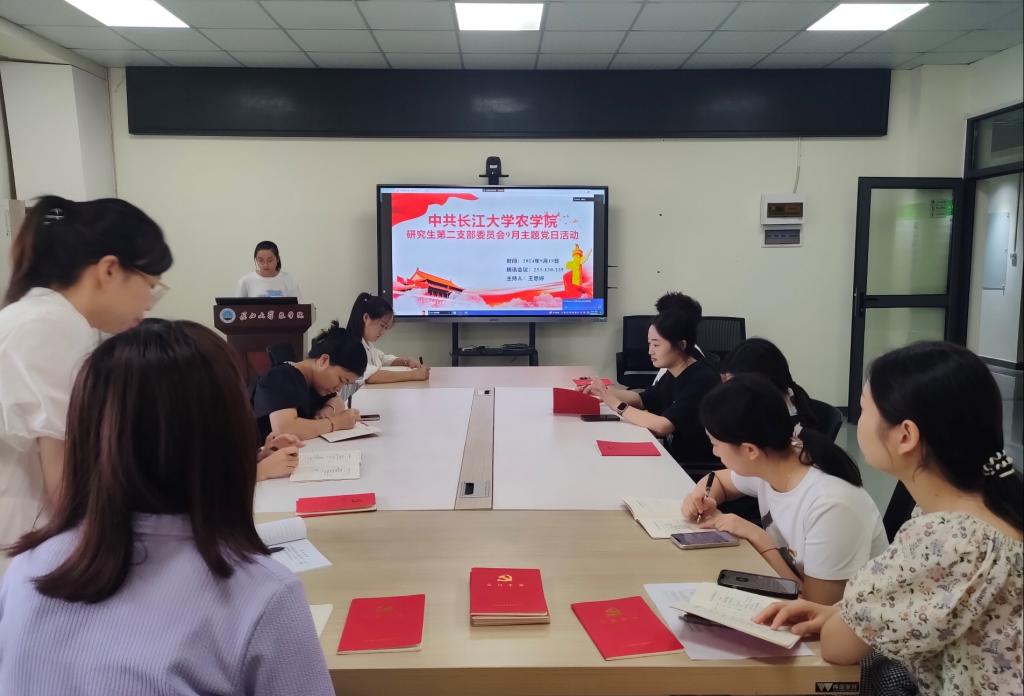 (通讯员 宋梦圆)2024年9月19日,我院研究生第二党支部在农科大楼3071开展九月份主题党日活动,活动结合腾讯会议(ID:253 130 235)的方式同时在线上召开。全体在校党员和校外联培党员共同参与,活动由王思婷同志主持。