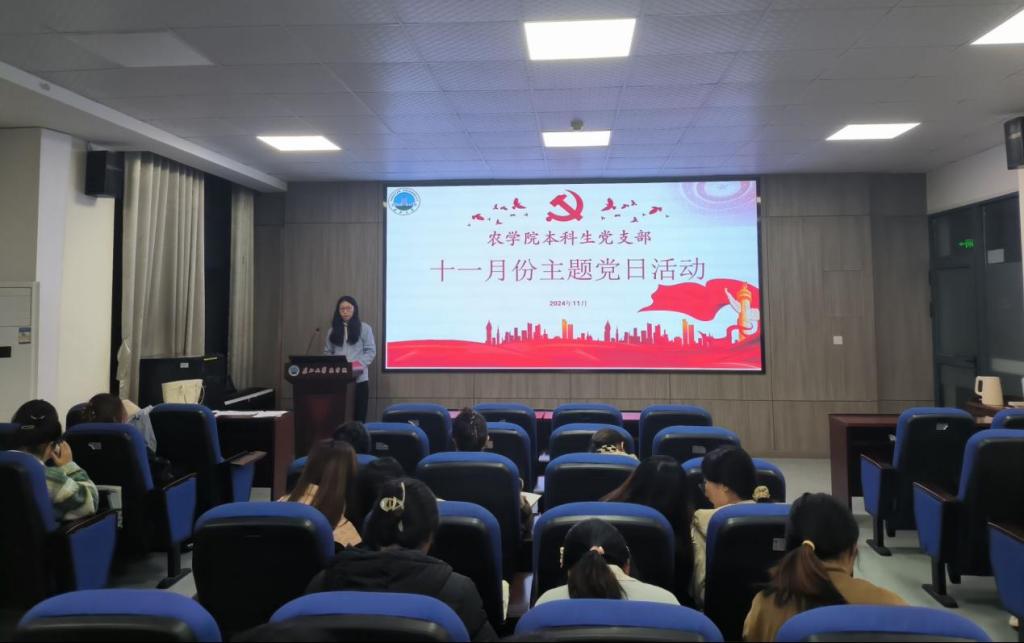 (通讯员 武芊睿)11月19日18:30,我院本科生党支部在农科大楼3073开展十一月份支部主题党日活动,活动线上线下同时进行,支部全体党员参会。活动由支部副书记高欣怡同志主持。