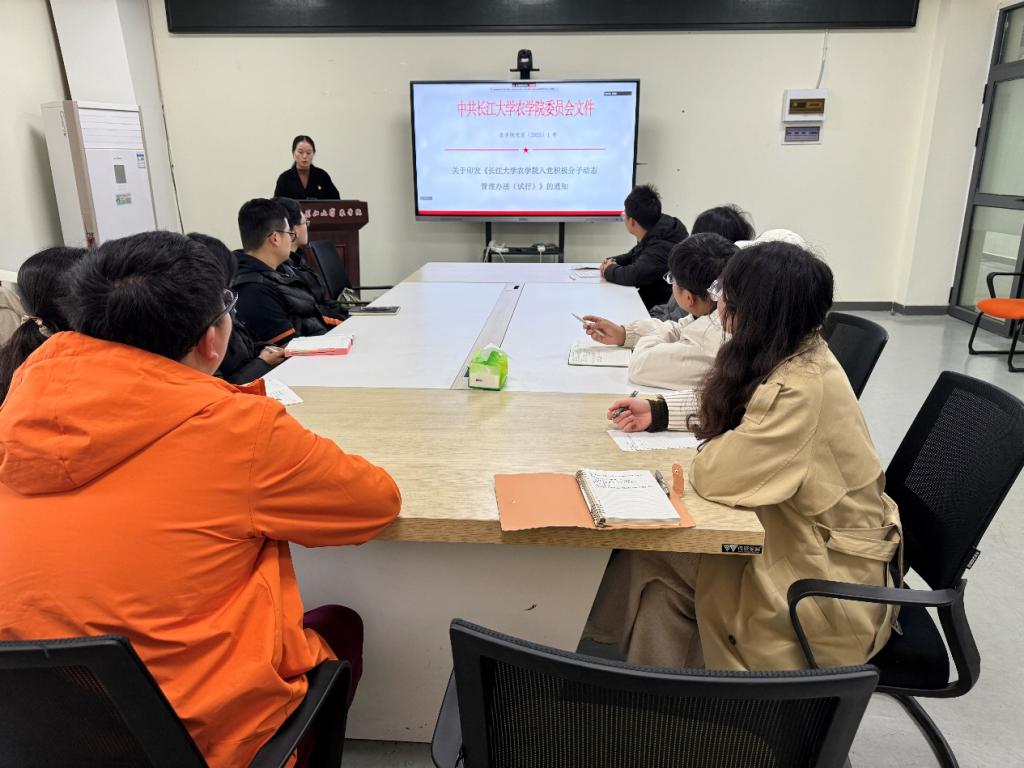 (通讯员 刘琦)为加强入党积极分子队伍规范化管理,从源头把握发展党员入口关,提高新发展党员质量,我院学生党支部结合线下和线上两种与会方式,于近日组织开展《入党积极分子动态管理办法》(以下简称《办法》)专题学习会,全体在校党员和校外联培党员共同参与,会议由各学生党支部副书记主持。