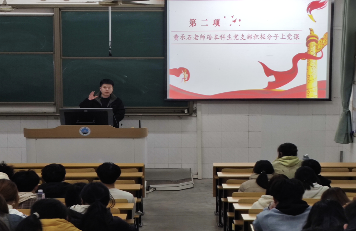 随后,黄承石老师以优秀党员黄旭华同志为例,通过讲述他的先进事迹,指出作为入党积极分子,要端正入党动机,认识到共产党员的身份不是索取的利器、炫耀的资本,而是责任与担当、承诺与付出。强调要牢记自己的初心跟使命,努力学习专业知识,积极参与实践,为祖国的繁荣昌盛贡献自己的人生价值。