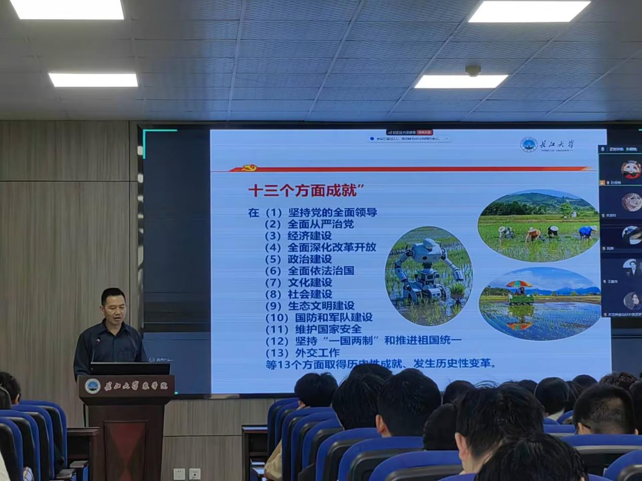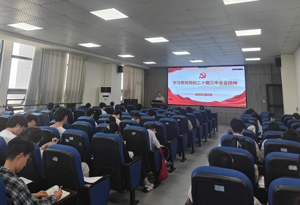 4月25日,世界杯官网副院长唐生标就“学习贯彻党的二十届三中全会精神”展开专题授课。唐生标围绕深刻认识党的二十届三中全会的重大意义、学习领会习近平总书记关于全面深化改革的重要论述、准确把握进一步全面深化改革的总体要求和深入把握进一步全面深化改革的重要任务四个方面进行深刻讲解。他强调作为青年学子,我们需深刻领会全会精神的核心内涵:一是锚定改革方向,强化科技自立自强与城乡融合发展;二是厚植为民情怀,让发展成果惠及全体人民;三是勇担青年使命,将个人理想融入国家发展大局。