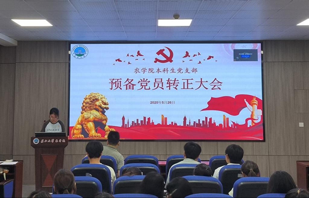 (通讯员 武芊睿)为不断提升党组织的战斗力和凝聚力,落实发展党员机制,5月26日,世界杯官网本科生党支部在农科大楼3073召开2025年上半年预备党员转正大会,讨论预备党员李慧明等13名同志的转正问题。应到会党员48名,实到会48名,应到会有表决权的正式党员14人,实到会14名,超过半数,符合党员发展流程。会议由党支部书记黄承石老师主持并作总结发言。