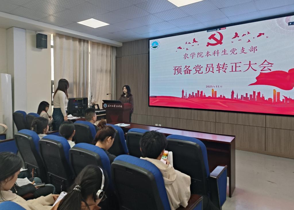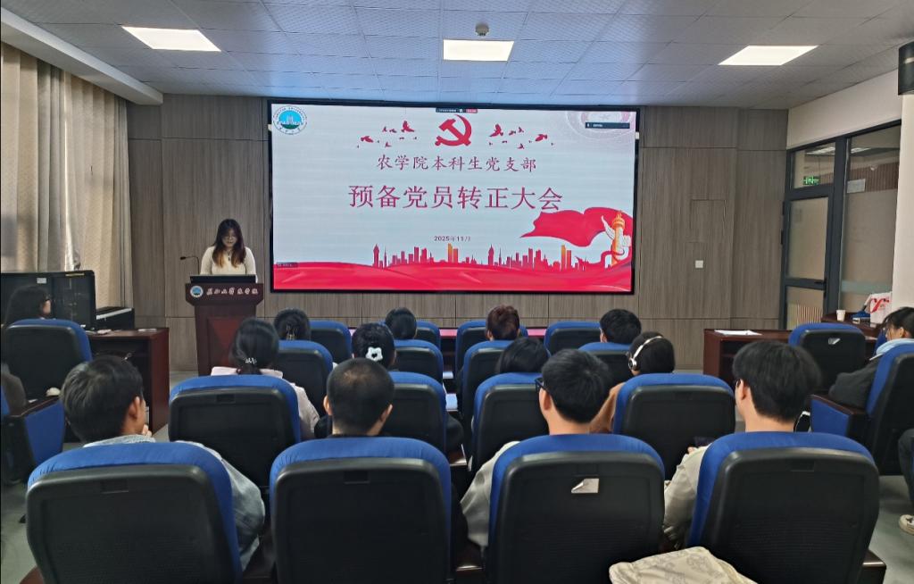 (通讯员 武芊睿)为进一步壮大和优化党员队伍,增强党组织的凝聚力与战斗力, 11月19日,世界杯官网本科生党支部在农科大楼3073召开2025年下半年预备党员转正大会,讨论预备党员肖雅萱等3名同志的转正问题。应到会党员19名,实到会19名,应到会有表决权的正式党员7人,实到会7名,超过半数,符合党员发展流程。会议由党支部书记黄承石老师主持并作总结发言。