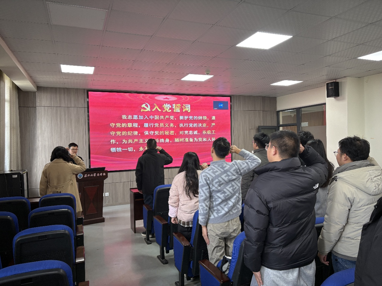 活动伊始,刘琦带领全体党员面向党旗高举右拳,齐声重温入党誓词。铿锵有力的誓言回荡在会场,彰显着研究生党员们不忘初心、勇担使命的坚定信念。随后,刘琦说明了本月党费已全部收缴完毕,以实际行动履行党员义务,强化组织观念。